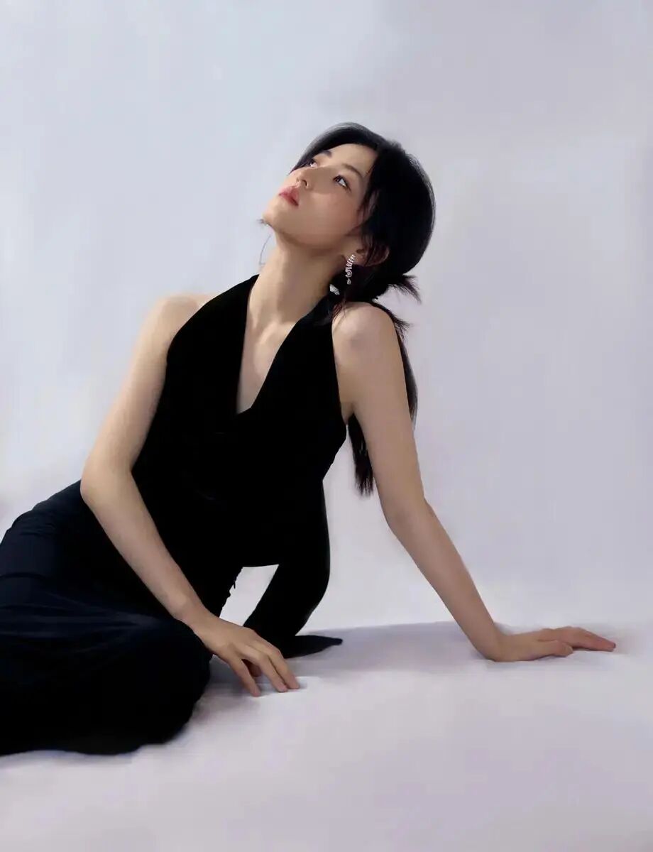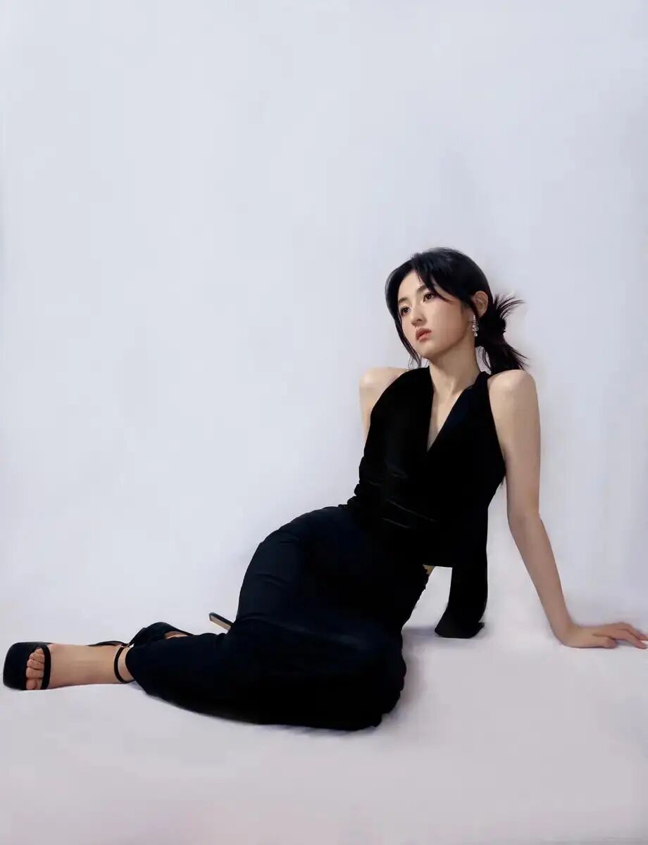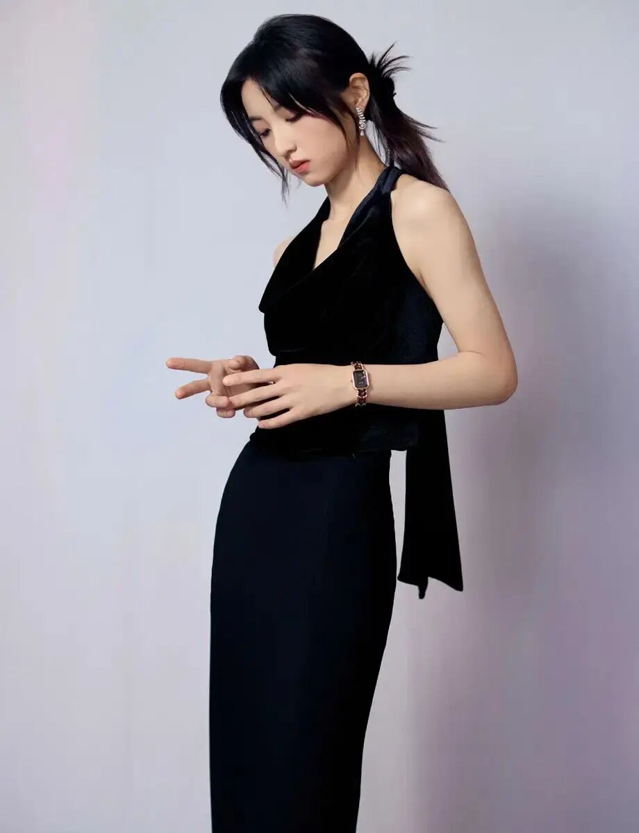 这次的造型可以说是把张子枫的高级感完全展现出来了。一袭纯黑造型,不是普通的黑,而是带着高定质感的那种通透黑。这身look真的绝了!