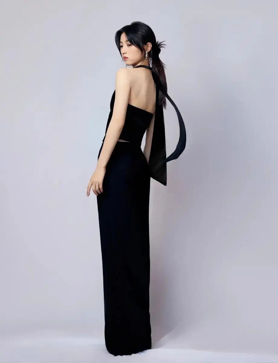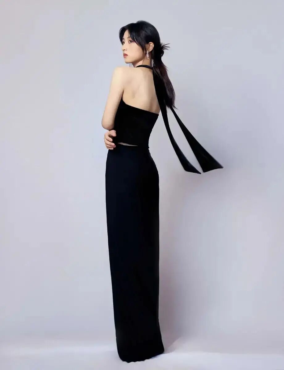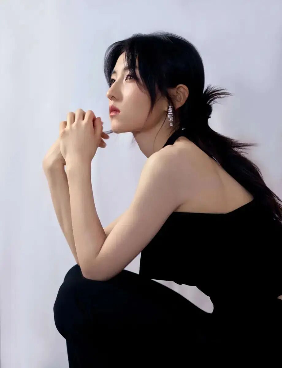 这次的造型可以说是把张子枫的高级感完全展现出来了。一袭纯黑造型,不是普通的黑,而是带着高定质感的那种通透黑。这身look真的绝了!