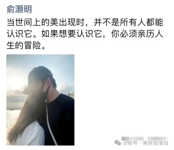 早在今年 6 月,俞灏明就在朋友圈悄然官宣了恋情,一张两人拥抱的照片,女方脑袋依偎在他的肩膀上,背对着摄像头,给这段恋情蒙上了一层神秘的面纱。当时外界传言纷纷,但都无法确定女方身份,网友们也只能在猜测中等待真相大白。