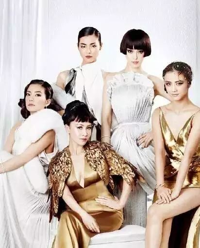 从左到右:赵薇 刘嘉玲 刘雯 范冰冰 汤唯赵薇的发型老气,汤唯的艳俗……不过还能认清这些都是谁,下面这是什么鬼,不写名字,我还以为杨幂、宋慧乔和张曼玉来了呢?