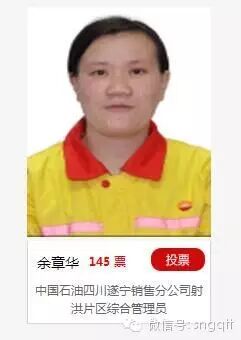 四川遂宁余章华同志被推送为2016年全国向上向善好青年候选人(申报类别为孝老爱亲),她是一名中国石油四川遂宁销售分公司射洪片区综合管理员。