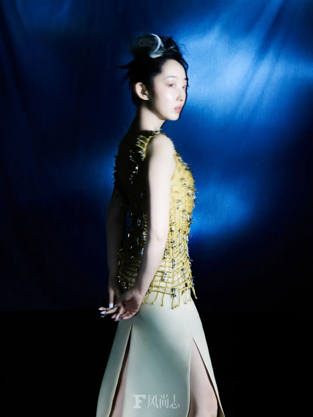 音乐和演戏对她一样重要,音乐可以贯穿她一天的生活。从早上起来到晚上睡前,在飞机上或高铁上时,都可以随时打开音乐。“它是一个调节情绪的法宝,心里会有某些地方松下来了,是灵感的到访时刻。”甚至在拍摄现场时,我们都能从化妆间里听到她播放的歌单,听后会让人雀跃。
