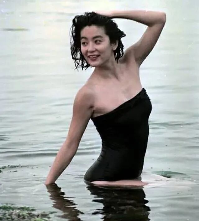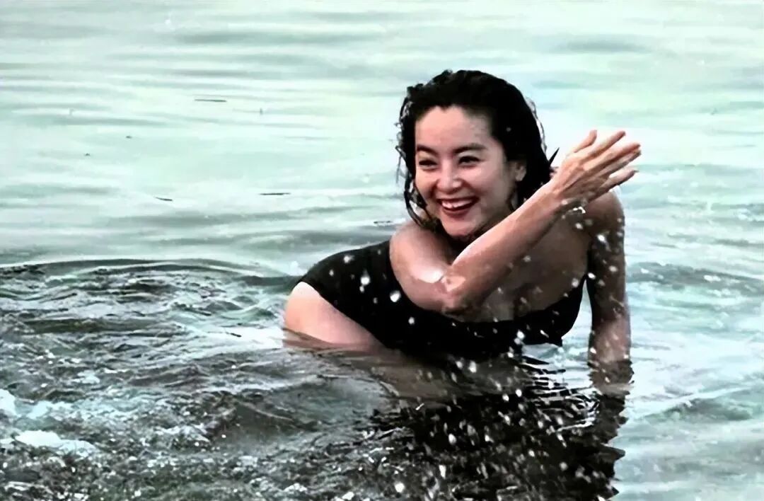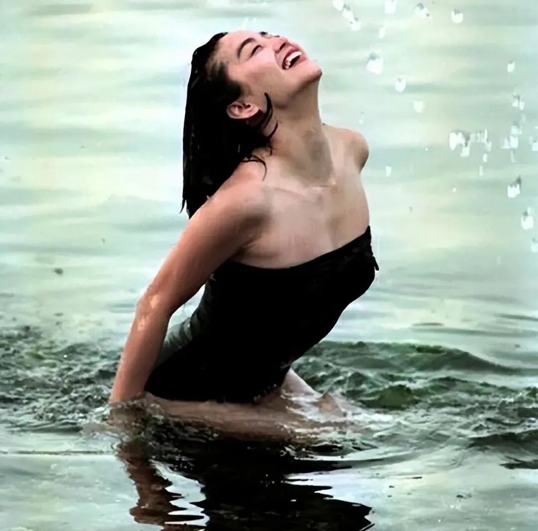 林青霞蹲在水中玩水,宛如出水芙蓉,无论是她的形体,还是她的气质,都很赏心悦目,另外,从林青霞脸上的表情就能看出她有多开心。