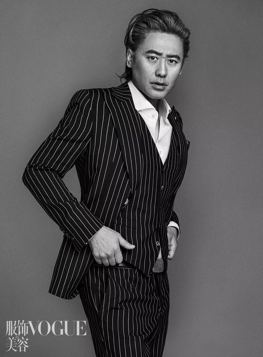 花灰的头发、精致的络腮胡、锋利的剑眉和坚毅的眼神构成了印象中的吴秀波,除却这些吴秀波也是中国真正意义上的“大叔”男神代名词,在他之前,人们仍在一窝蜂的推崇年轻的肉体,而吴秀波的出现证明了男人40、50的年纪也可以拥有自己的时尚态度。