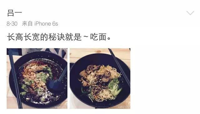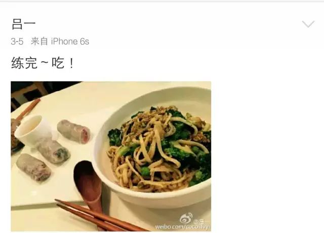 回到现实生活中,吕一是妥妥的吃货妹纸一枚。翻开吕一的微博,关于吃的微博还蛮多的!尤其是对面食情有独钟呀~我们的吕一妹纸不但会吃,还会自己做美食!