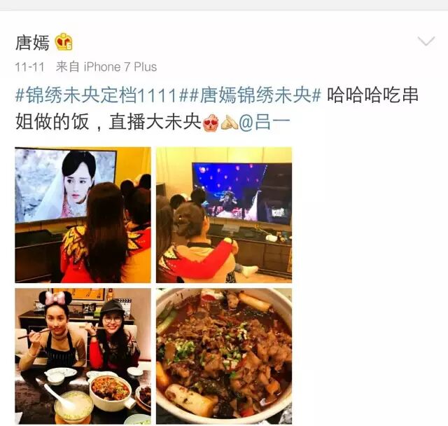还记得前段时间《锦绣未央》开播期间,唐嫣晒图说吕一做了“大餐”,她们两个边吃边看《锦绣未央》!吃着自己做的美食,看着闺蜜的新剧,人生一大美事啊~