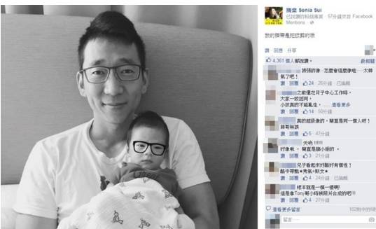 去年年初,隋棠和Tony在美国赌城注册结婚,同年8月还产下一子。