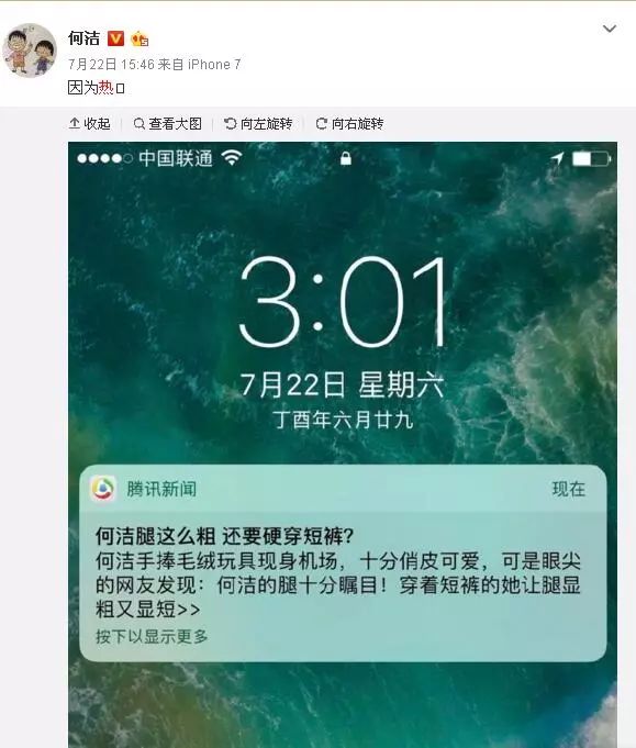 何洁离婚之前,对她最多的讨论是关于身材的,看起来又长胖了或者腿好粗,不然就是机场走秀发出来的照片故意把自己p得很瘦,到最后,她都忍不住把写自己的新闻晒出来吐槽一番。