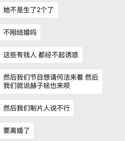 赫子铭的的这番说法不仅引来主持人怒怼,何洁万圣节开房也被驳斥。当天主持人谢楠发了微博指出与何洁还有其儿子聚会。