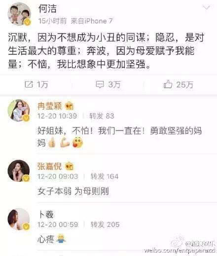 2015年7月,《旋风少女》开播发布会,久未亮相长沙的何洁挺着大肚子蹬着高跟鞋上台开嗓。她没有化很浓的妆,唱完之后就匆匆赶回北京。一个孕妇如此奔波在娱乐圈很少见,她在后台笑得恬静,说不要把她当特殊人群。她说想起要做两个孩子的妈妈,生活很有动力。当时只是觉得这番话说得很动情,却没有看到背后的压力。