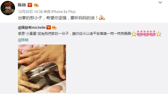 过去的一天真的很热闹,先祝福陈晓和陈妍希终于得子,一家三口的剪刀石头布满满都是温馨。