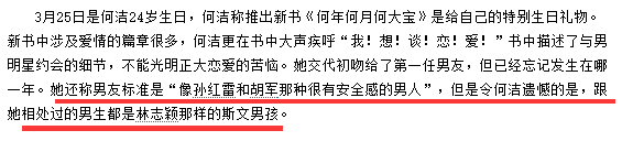 外界都很好奇已经很红的何洁为什么会看上这个名气相差甚远的男生,她在2010年的采访中就曾经说道希望找到一个向胡军那样气质的男子,外表看似女王的她有一颗公主心,只是想找个威武雄壮的套马杆汉纸。赫子铭从外表上来看确实还有几分荷尔蒙气息,但人不能貌相。