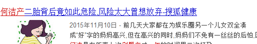 剖腹产不到一年内再度怀孕,何洁这个举动很危险。但也让外界认为她与赫子铭的婚姻状况非常让她满意,所以才痴狂。