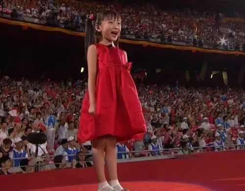 提到林妙可,这张照片上白色裙子的女孩不得不提,她就是当年奥运开幕式上,虽然歌唱的好,却因外貌不及林妙成了“声替”的杨沛宜。