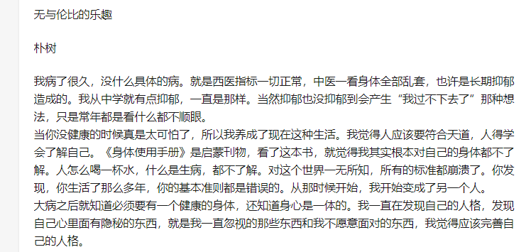 他曾说:“其实也没觉得抑郁到过不下去,只是常年看什么都不顺眼。”