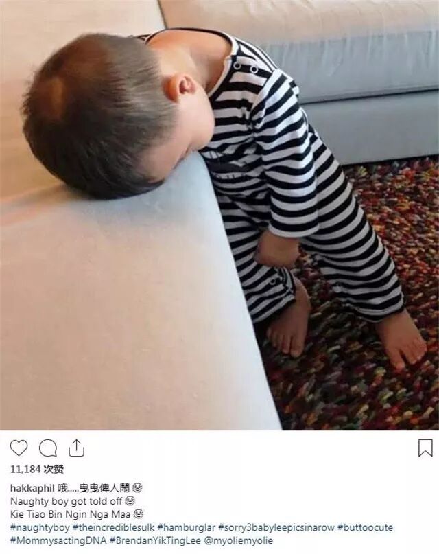 上周,李乘德分享出一张亦霆仔的近照,也不知道小家伙是做了什么事,惹爸爸生气了,让爸爸称他是“淘气男孩”,而且还被训了。