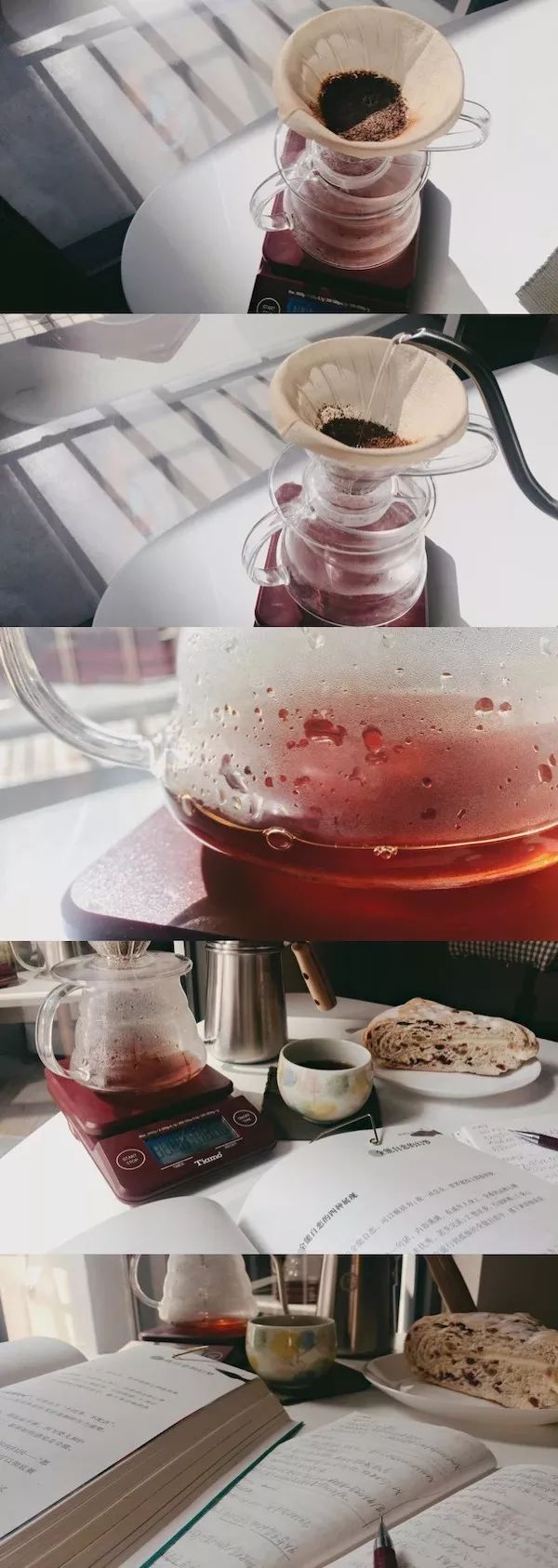 晨间咖啡是最后一步唤醒动作,就算我没时间吃早餐,也必须要冲手冲,因为在专注着水流冲进咖啡粉,滤出清澈通透的咖啡,散发出幽幽的迷人香气的过程中,我在感觉到整个唤醒仪式的结束,手冲我一般就是使用手冲壶,也试过用Chemex壶。