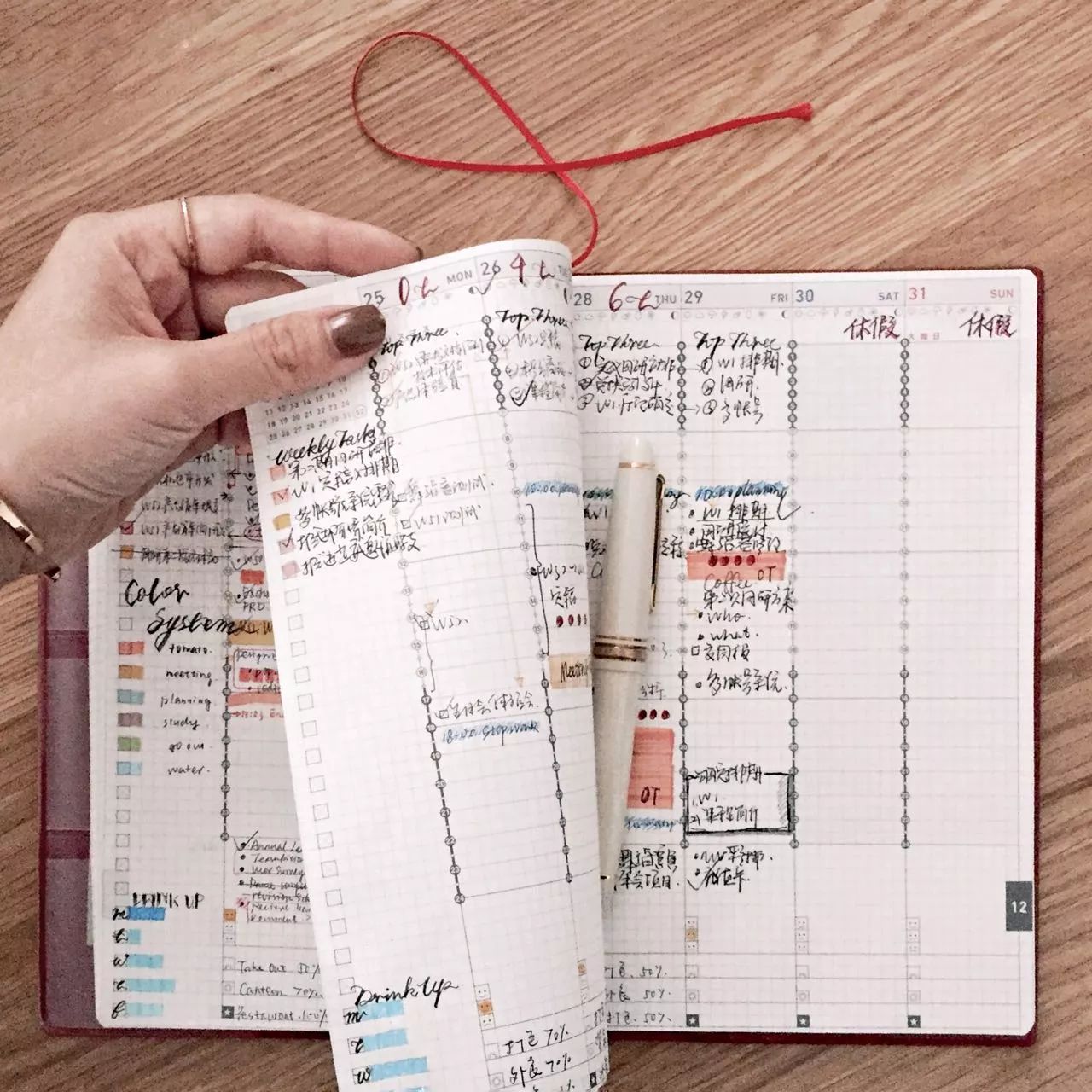 周末和工作日午休下班时间,我还会打开随身携带的 Filofax Holborn pocket,查看月历上的生活日程和ddl是否已完成,查看周记页上今日想要完成的其他增值项目,如看书、学习、健身等,安排好完成它们的时间,查看本周习惯打卡项目完成情况,某些内容也会单独拿出来做单独项目跟踪。