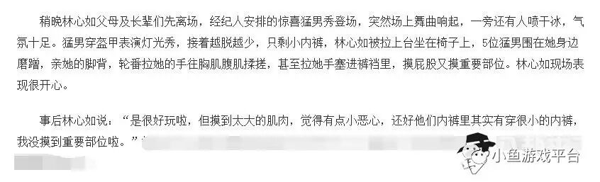 事后被其中一位肌肉男微博爆料林心如身材很有料,摸起来很有感觉。