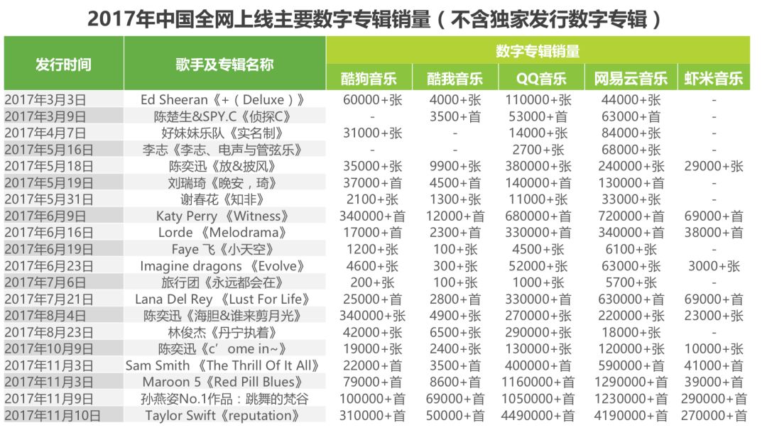 据艾瑞咨询《2018年中国数字音乐消费研究报告》显示,在2017年全网上线的这20张数字专辑中,网易云音乐共取得13张专辑销量第一的成绩,其中8张欧美音乐数字专辑,网易云音乐在6张专辑中实现销量第一。由此可见,网易云音乐虽然在用户基数上不占优势,但相较其他平台具有更高的付费转化率,且在欧美音乐与独立音乐数字专辑方面表现更突出。