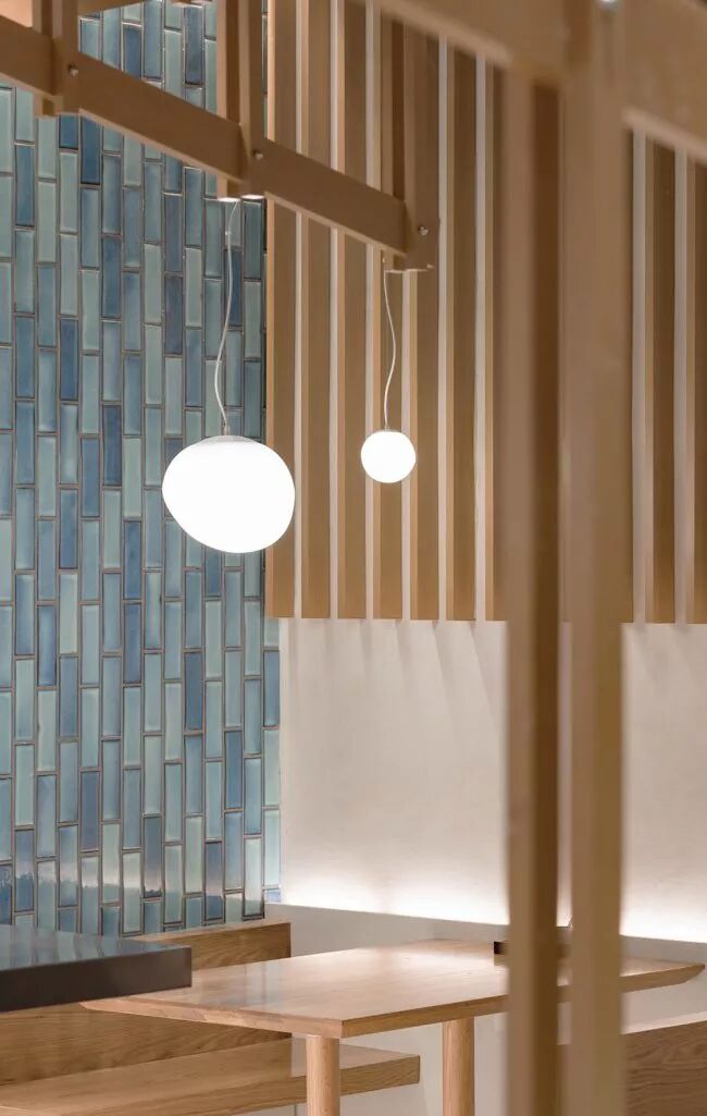 设计者用简约的线条去演绎日本建筑层迭的屋檐,再将空间重新划分与组合,试图将日本日落时分挂满灯笼的老街带入这间面屋之中。
