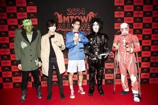 在前两年的SM万圣节派对上,EXO成员们也纷纷以cospla造型亮相,伯贤的吸血鬼造型让粉丝们大呼惊艳,而CHEN cos的这个酸奶大妈也是让人哭笑不得。