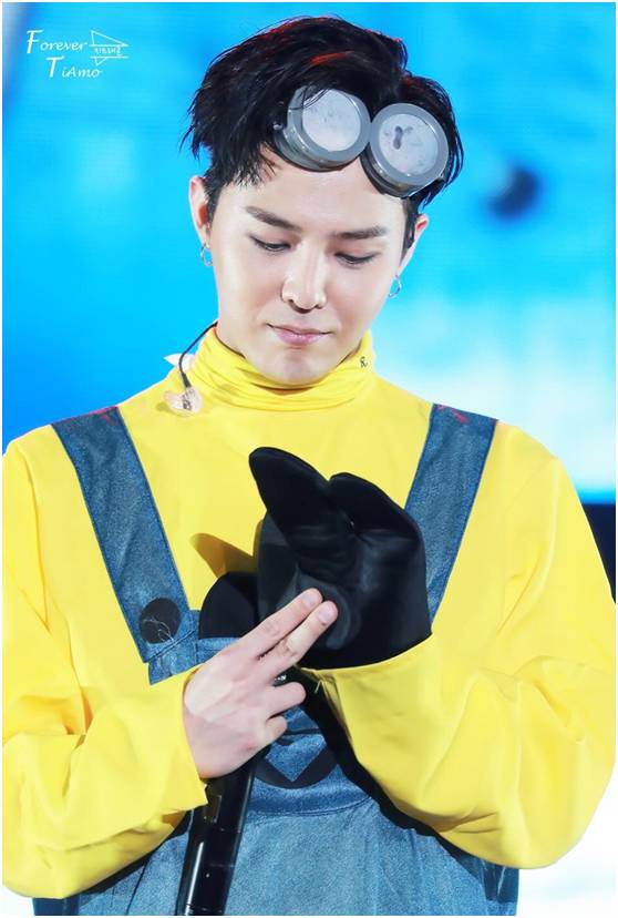 在之前BIGBANG的中国巡演中,GD可是给我们带来了不少的惊喜,cos了很多人物。在哈尔滨场上我们的GD就cos了超级可爱的小黄人。蓝色的衣服还有头上可爱的眼镜,配上萌萌哒的表情,简直让粉丝们喜欢到不行。