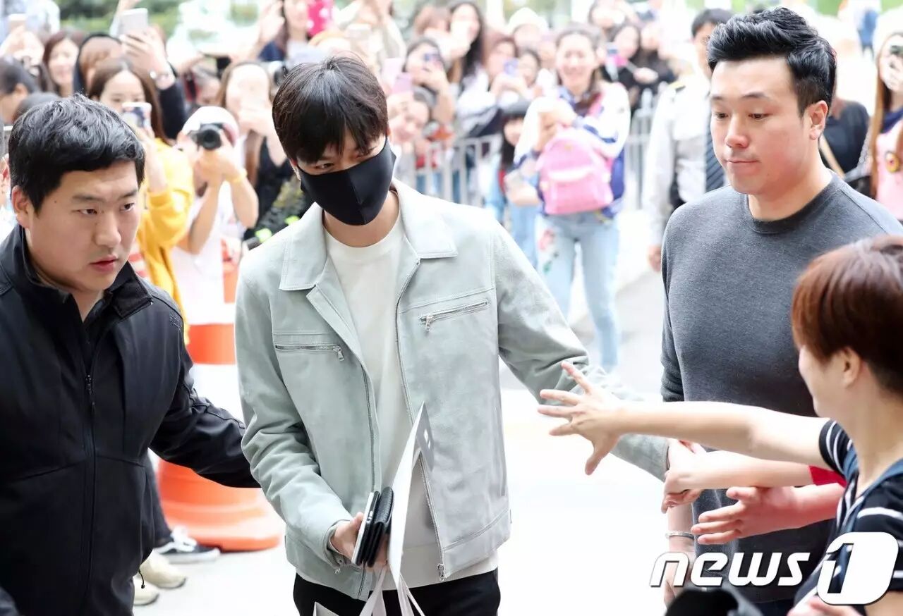 早晨8点45分(韩国时间),李敏镐身穿黑色裤子和白色夹克,面戴口罩提前1小时现身江南区厅,正式报到服兵役。面对粉丝和媒体,他只挥手示意,没有发表感想。
