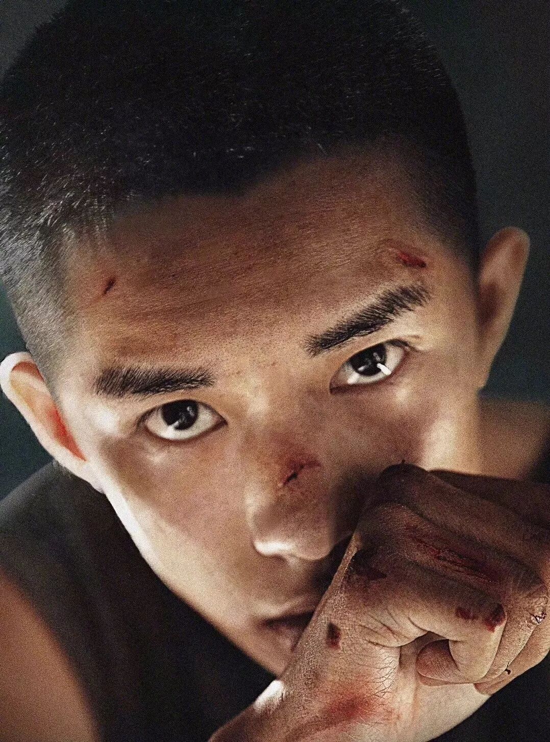剧照中的他粗粝质感、圆寸造型、眼神有戏。