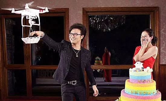 ▲2015年年初,歌手汪峰向女神章子怡求婚时,使用无人机传送婚戒,让无人机跟他一起“上了头条”,无人机也再次火了一把。