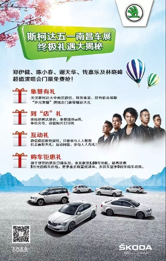 2016年南昌车展4月30日至5月1日在南昌国际会展中心举行,每天都将免费送出价值666的陈小春郑伊健等演唱会门票一张!
