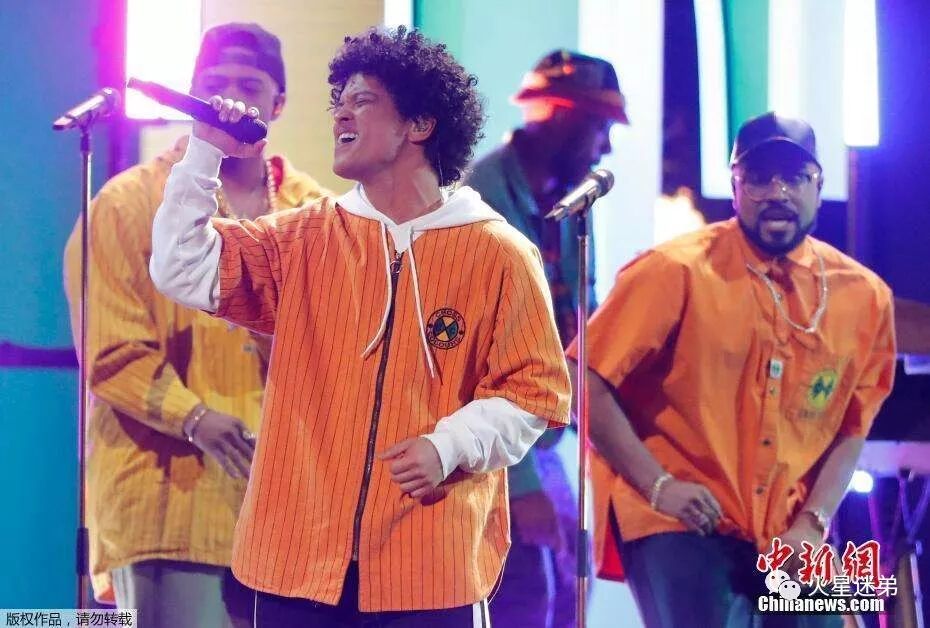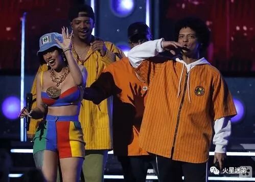 在格莱美现场表演中,Bruno Mars与Cardi B合作的《Finesse》十分的完美。