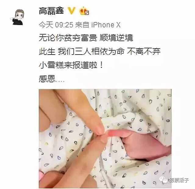 随后高磊鑫也发同款微博内容和图片, 并且透露宝宝小名为“小雪糕”!