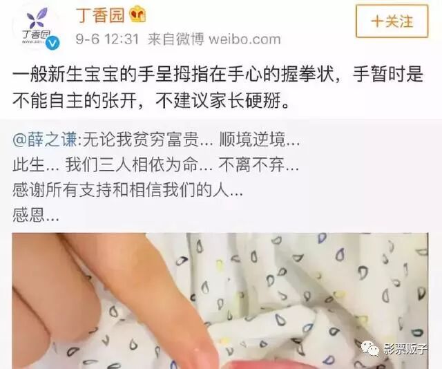 在薛之谦发博之后,医学博主丁香园就来告知大家真相了,丁香园转发了该微博,并温馨提示表示:“一般新生宝宝的手呈拇指在手心的握拳状,手暂时是不能自主的张开,不建议家长硬掰。”