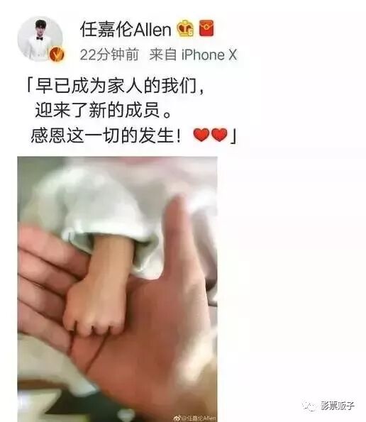 薛之谦在微博晒出一家三口手指照宣布当爸:“无论我贫穷富贵,顺境逆境。此生,我们三人相依为命,不离不弃,并感谢所有支持和相信自己的人。”