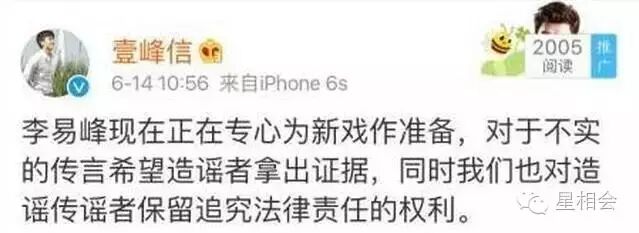 随后李易峰发声明否认:对造谣者保留追究法律责任的权利。