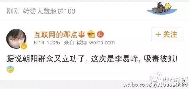 紧接着一个段子号微博更直接点名道姓的说李易峰吸毒被抓,这一下子炸锅了!