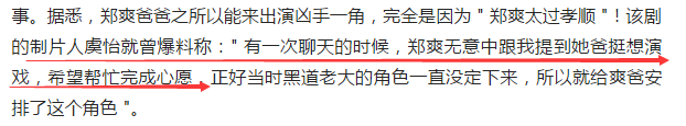 据说郑爽妈妈是一直有个演员梦,于是就把希望都寄托在郑爽身上。郑爽爸爸似乎也是一个非常热衷演艺事业的人,如今父女俩一起上节目,爽爸还接受了各种媒体的采访,甚至客串电视剧《煮妇神探》,这架势简直是要出道了。