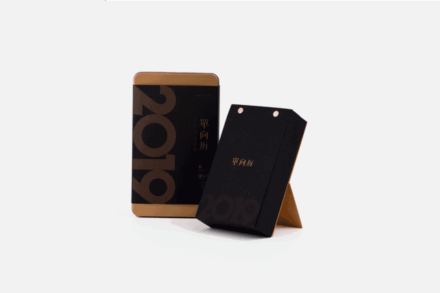 而这次的「黑金款」,则首次采用金属支架,支架用铝合金制作,电镀金色:只需一个甩开的动作,就可以让日历稳稳立于桌面。黑金款采用了天地盖的包装盒,可以把撕下的页面放入,盖上盖子,收纳得清清爽爽。是送礼的第一选择。