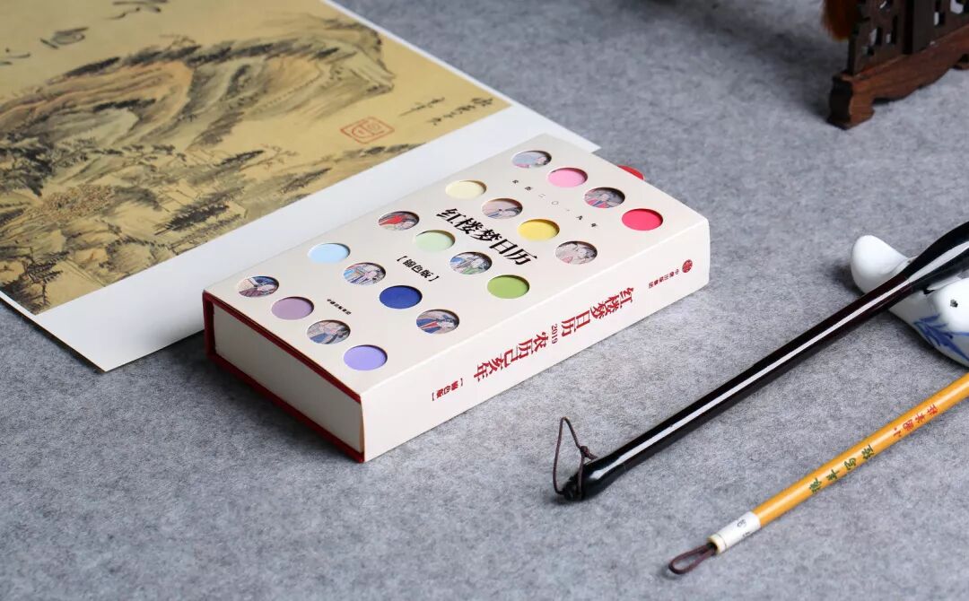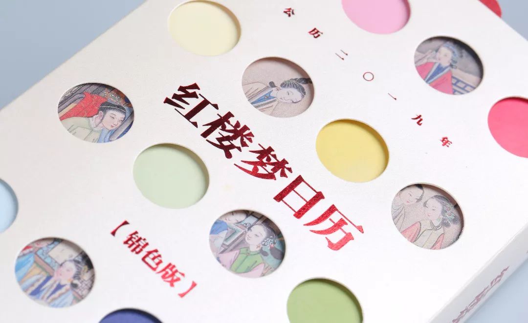 内封保留以往的红楼主题色调,外封采用全新镂空设计,典雅传统与清新时尚的搭配。附赠绘有红楼色彩与红楼人物的双面年历卡片,轻轻抽动,从镂空圆框中呈现移步换景的审美效果。