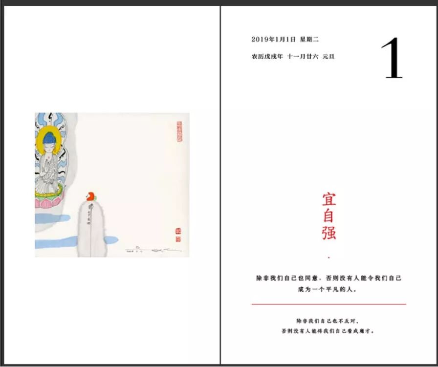 每天都是一场修行。希望这本日历能带你抚触灵魂。 二〇一九,不再奔波于忙碌。二〇一九,不再焦虑与狂躁。