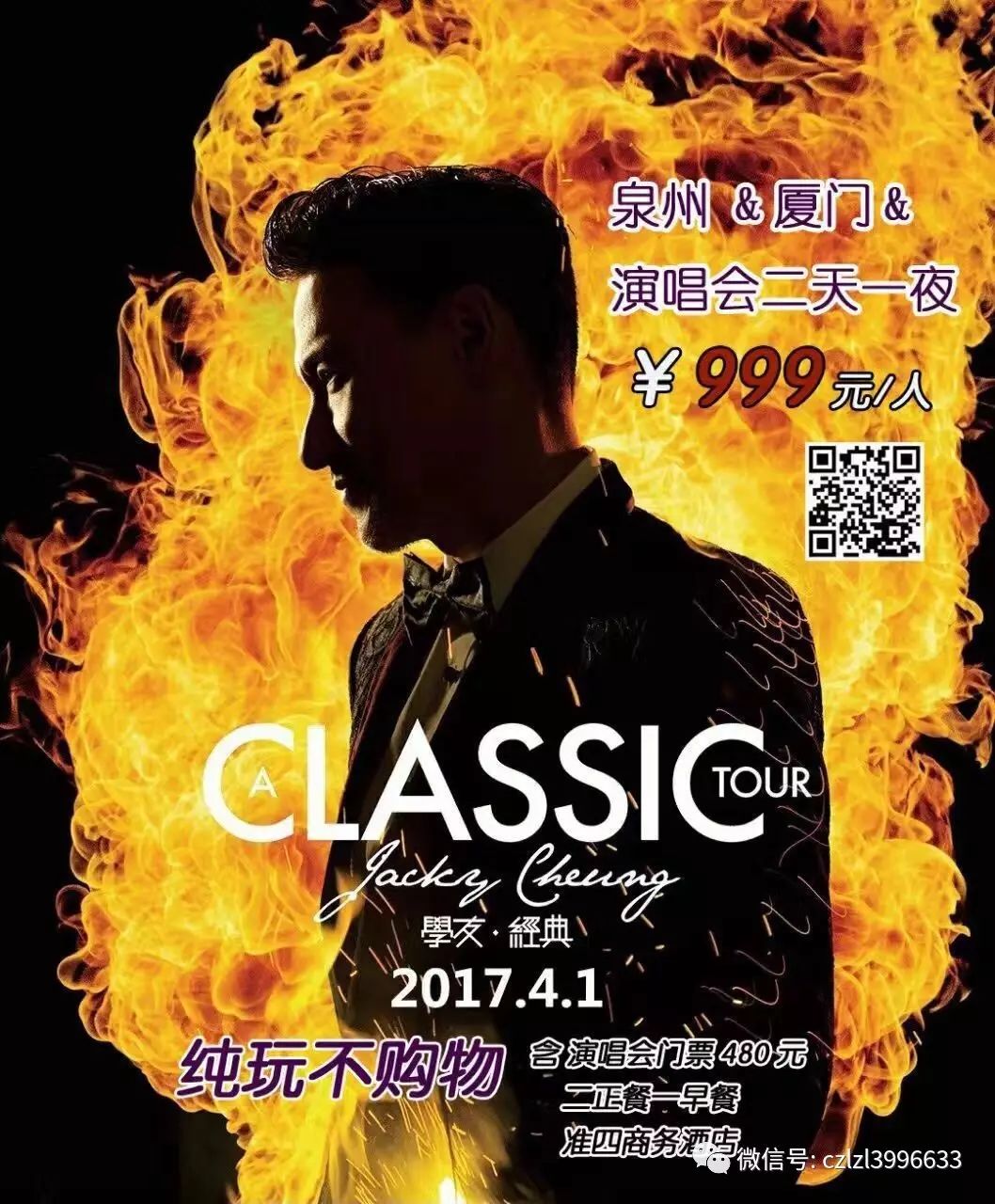 ▼泉州张学友演唱会动车四星两天(只要999元/起)