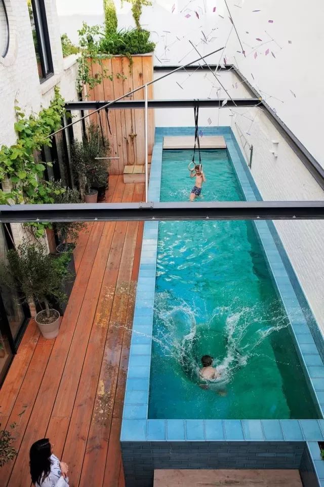 房子中,除了孩子们的游泳池,还有他与妻子的大人游泳池,