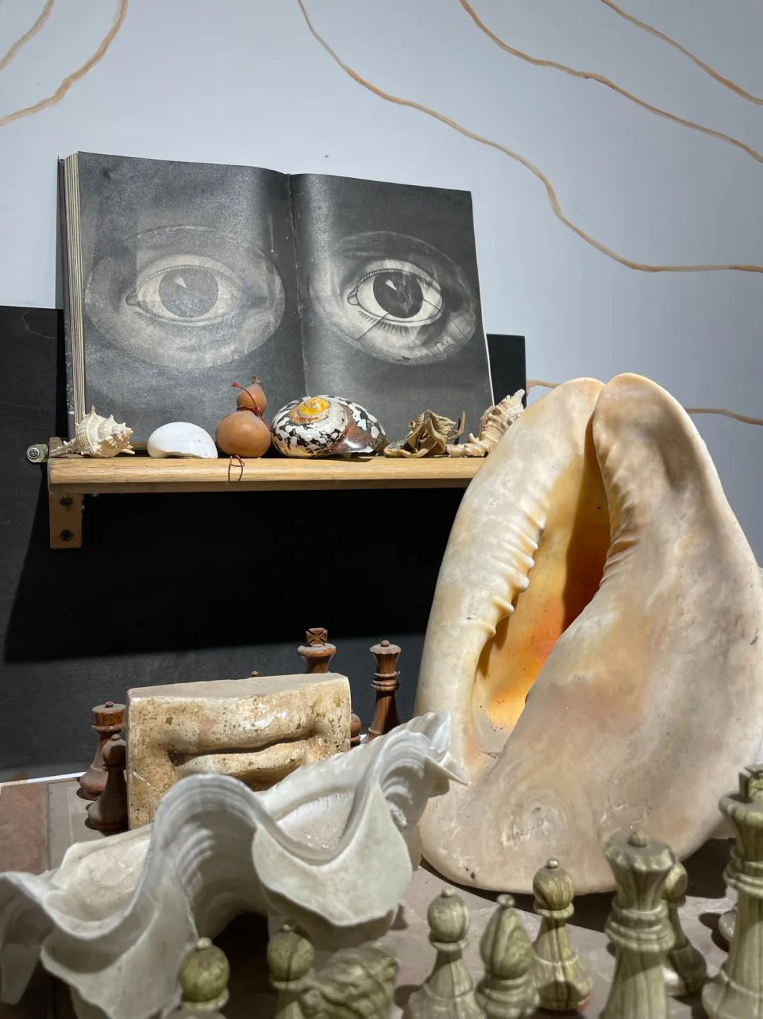 纸本、椴木、贝壳、海螺、 石膏、 葫芦、铁、树枝