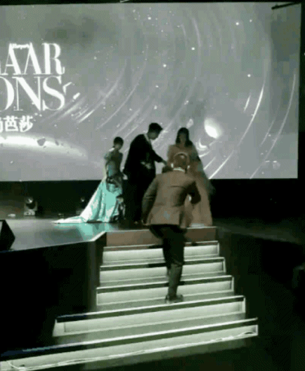 在各种红毯、典礼上,都会时刻注意帮助穿高跟鞋不方便的女艺人上下楼梯。