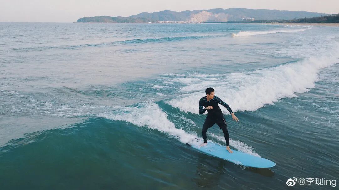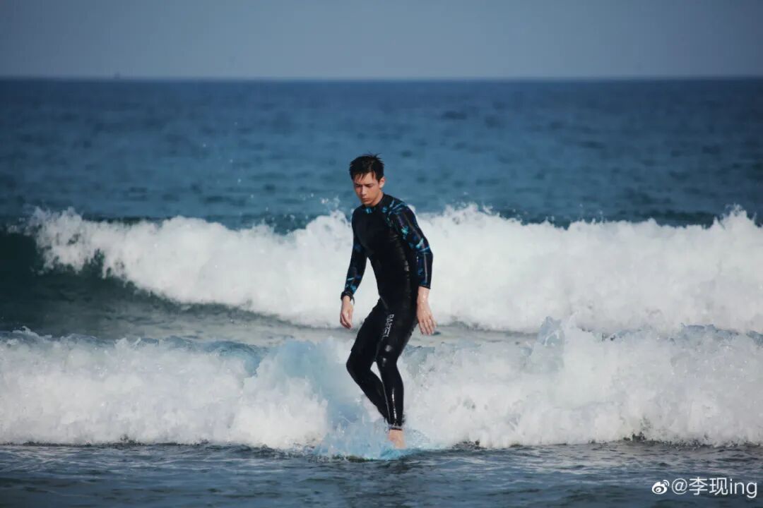 李现在浪花之间挥洒自如的状态,充分证明了自己对身体完美的支配能力。