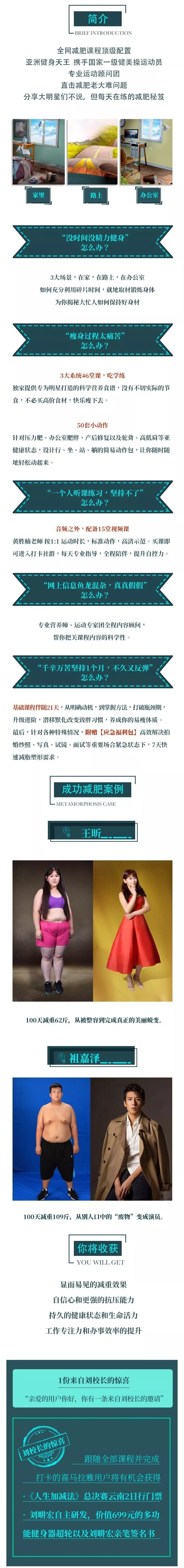 锻造更强大的力量,获得对生活更强的掌控感; 散发迷人的魅力,赢得众人的赞赏; 在繁忙中恢复活力,让事业没有后顾之忧; 更加自信,婚姻变得更幸福; 拥有健康的生活方式和精致的身材,让孩子为自己骄傲。