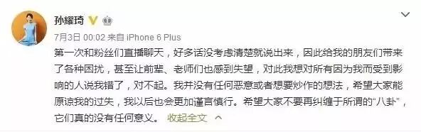 2016年7月初,孙耀琦在个人直播中爆料陈晓