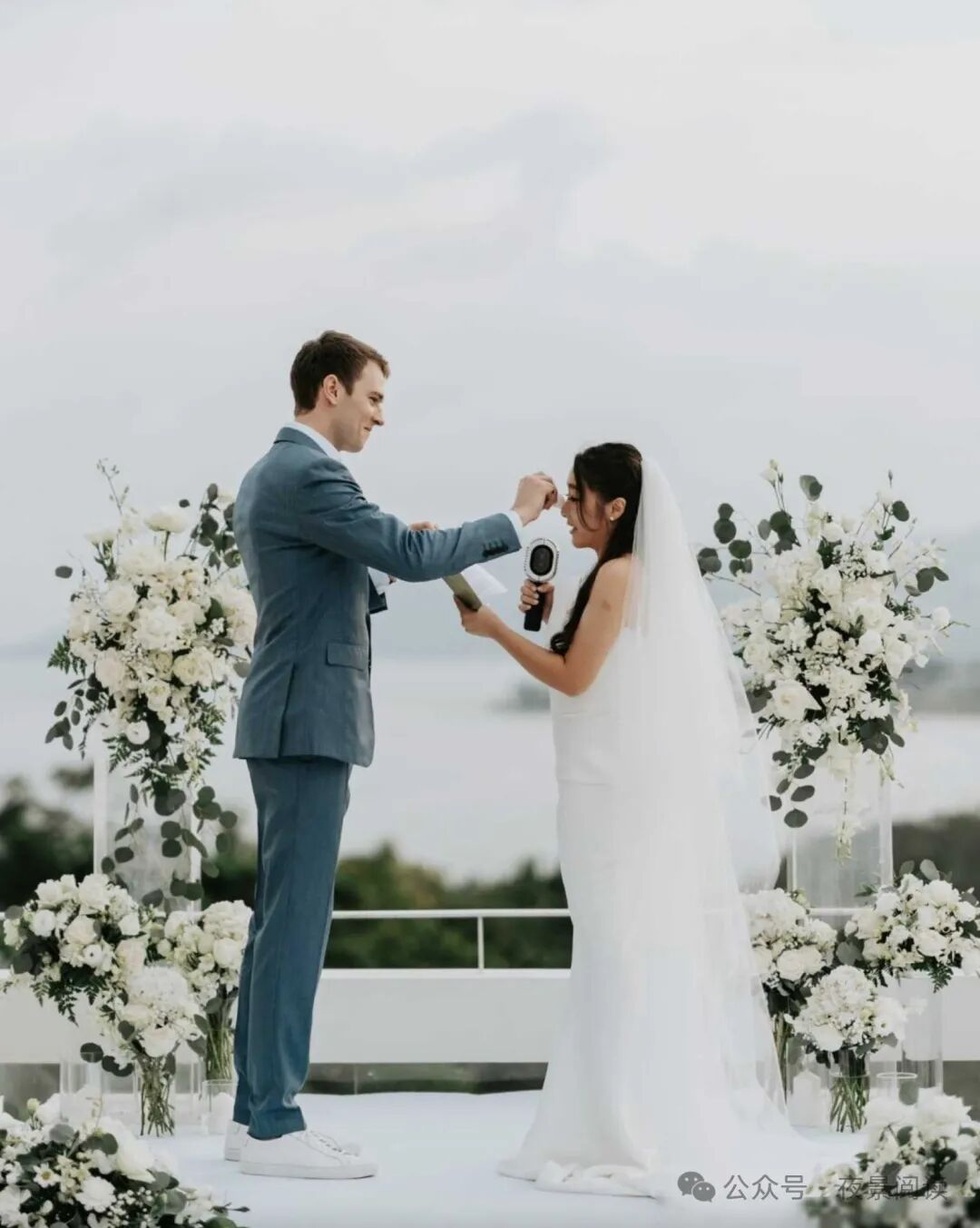 镜头转向新人这边,只见梁静曦和她老公跪在铺满红布的地上,恭敬地向长辈献上最诚挚的敬茶礼。大功告成之际,梁家辉忍不住眼眶湿润,妻子在一旁轻声安慰,这样的画面令人动容。走出客房,在大自然的怀抱中,夫妻二人手牵着手、深情款款地面对大海宣誓。面对海洋,梁静曦深情告白,忍不住落下了幸福的泪水。新郎看到这里,细心地帮她拭去涌出的泪水,这个小小的温泉,让整个气氛更加美好。宣誓过后,他们交换了彼此的承诺,婚礼在此刻达到了最高潮。伴随着众人的欢呼声,梁静曦正式成为新娘,开始迈入人生的另一个崭新的篇章。