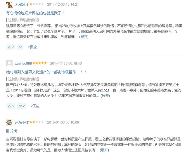 对偶像明星毫无原则的支持和对电影毫无节制的宽容,让粗制乱造,不知所云的电影充斥其中,卷走了看客的钱,又给一众看客留下了烂片的心理阴影,因为我们大多数人的来者不拒,这种让观影者赔了钱又赔了心情的事情,依然屡见不鲜。